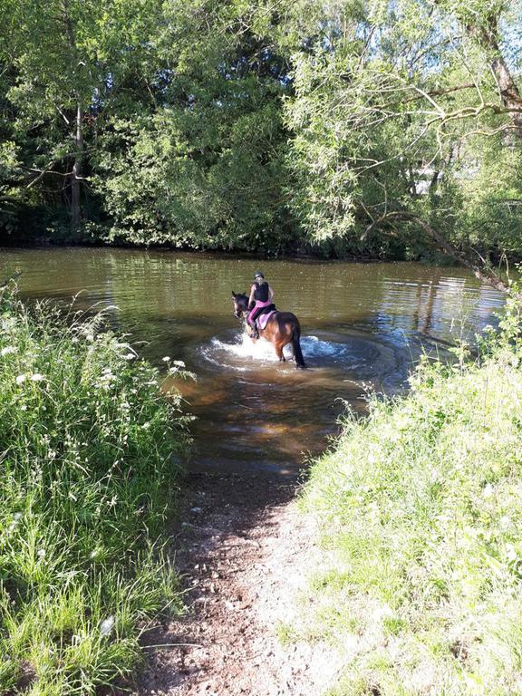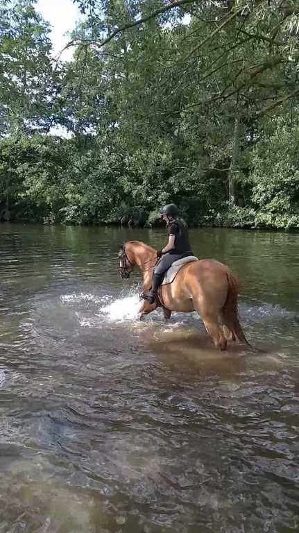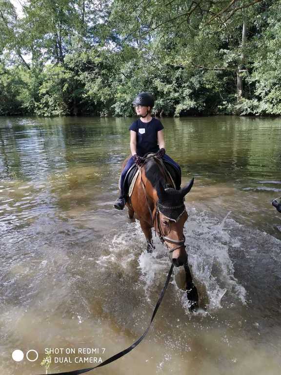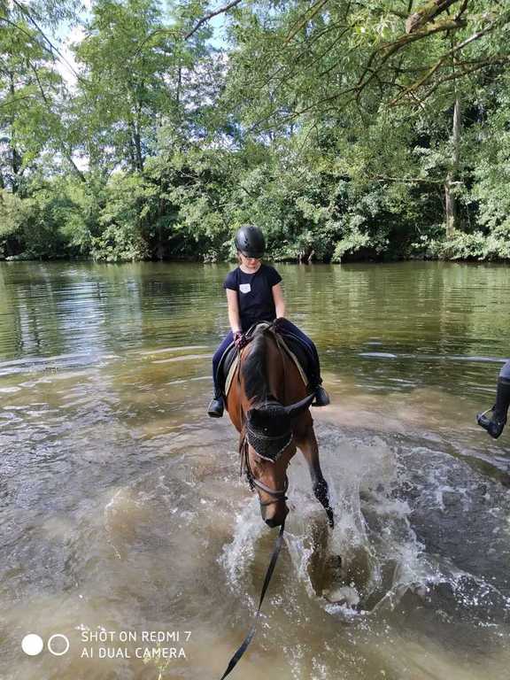 Gemeinsam unter Bäumen bergauf und bergab durch die Wiesen reiten, daran hatten ALLE Spaß. Und weil das Wetter so schön war, gab's zum Schluss noch eine kleine Abkühlung in der Eder.