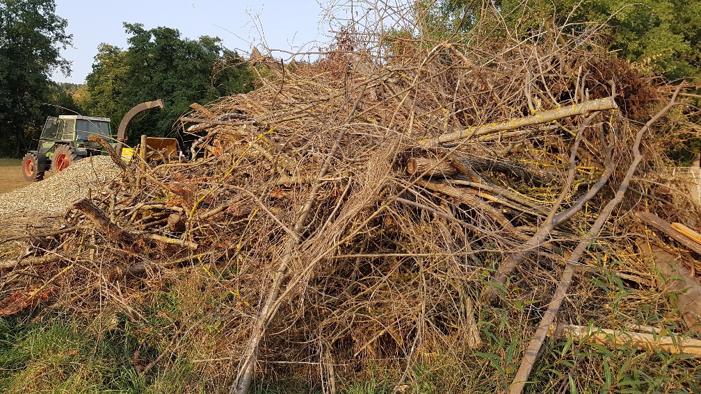 Arbeitseinsatz - Das Osterfeuer (welches leider Coronabedingt ausfallen musste) wurde teilweise geschreddert. Vielen Dank den fleißigen Helfern!