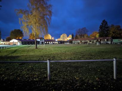 Eine tolle Aufnahme von unserer Reithalle bei Dunkelheit