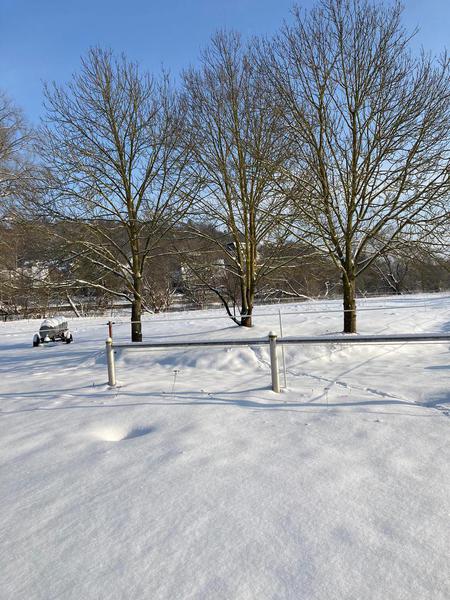 Von der Stallreinigung, der neuen Einstreu, über Füttern und das Erkunden des neuen Rundwegs entlang der Eder.